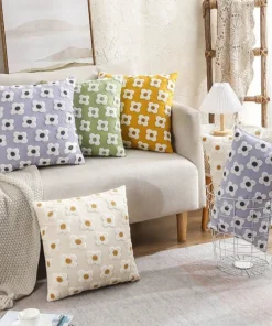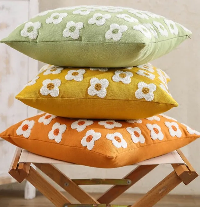 Daisy Embroidered Lumbar Pillow Cover