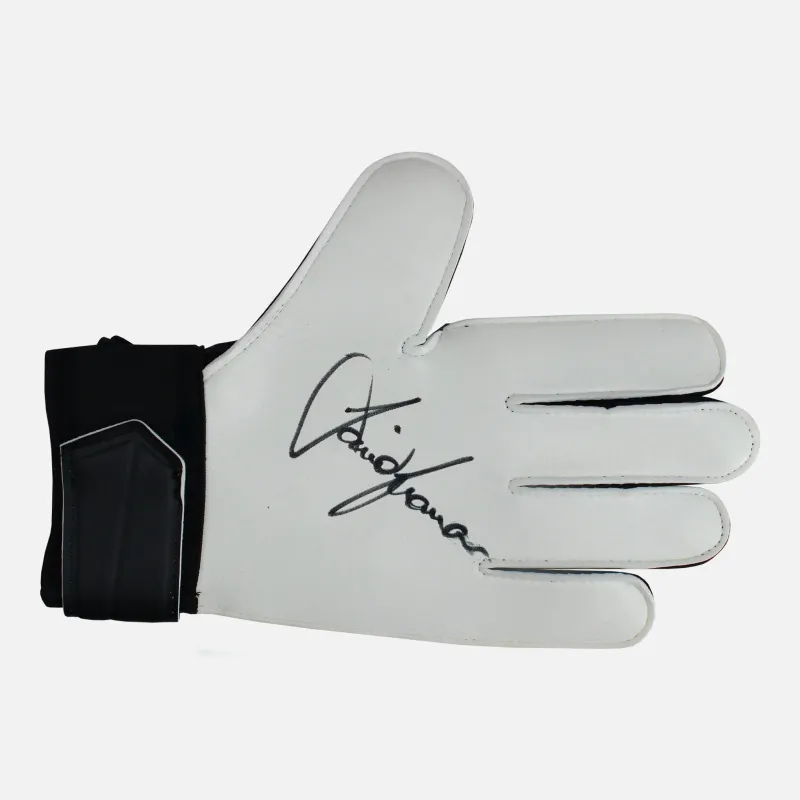 David Seaman personally signed goalkeeper glove. The England and Arsenal goalie has 141 Premier League clean sheets, featured at 2 World Cups and helped the gunners secure 2 league and cup doubles.