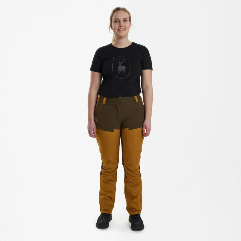 Stylish and versatile outdoor trousers in the Lady Ann series from Deerhunter. These trousers have areas of elastic contrasts, which makes them incredibly flexible and ensures good freedom of movement. The Lady Ann trousers are OEKO-Tex certified and treated with Teflon Shield+, which repels water and dirt and helps the fabric to dry more quickly.