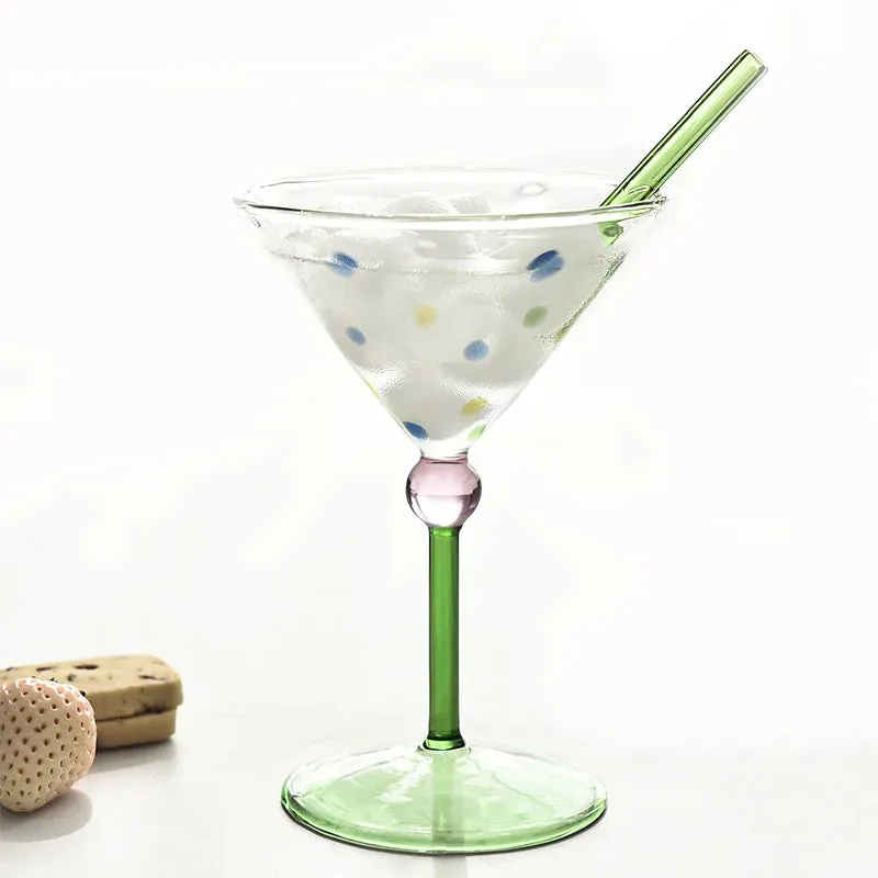 Bring playful charm to your table with the Dottie Stem Glass Cup. With its whimsical polka dots and vibrant colored stem, this glass feels like a little celebration in your hand—whether you’re sipping martinis, serving ice cream, or setting out cocktails for your next gathering. The hand-blown design features a sleek martini silhouette paired with a hint of retro fun, making it just as perfect for weddings and dinner parties as it is for casual nights at home.