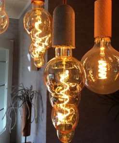 Dramatic Bubble LED Amber Glass Filament Bulb & Pendant Light Socket