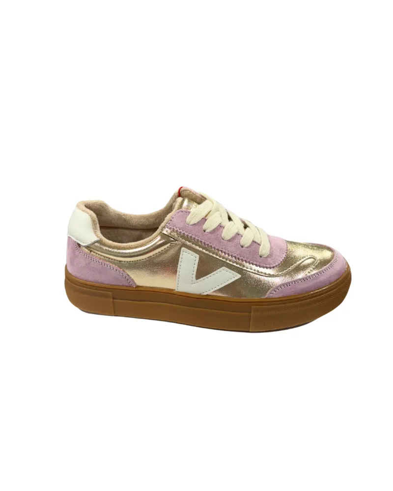 The Drilleys Women’s Trainer Eighty in Gold Musk brings a playful mix of shine and softness to everyday style. Featuring metallic gold panels paired with muted pink accents, it strikes the perfect balance between bold and wearable. The cushioned sole ensures comfort throughout the day, while the classic lace-up design keeps the look timeless. A standout trainer for adding personality to casual outfits.