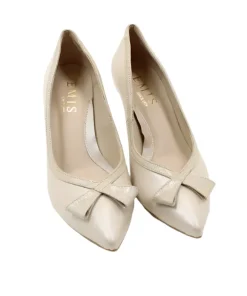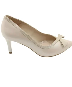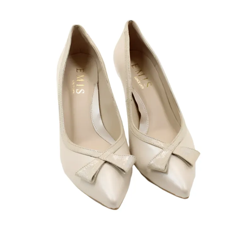 Elevate your style with the latest elegant heeled shoes from Emis just for you. Designed in a beige shimmering leather with a colourful trimming and upper bow. Finished with a heel height of 80mm and designed with a padded insole.