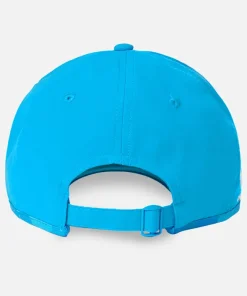 ECB England Cricket Cap in bright blue ‘Cloisonne’, Castore, adjustable strap for a comfortable performance fit. Curved visor hat featuring the England crest embroidery, as featured in the One Day International series across 2024-25. One size hat, Official Castore ECB England collection, licensed merchandise.