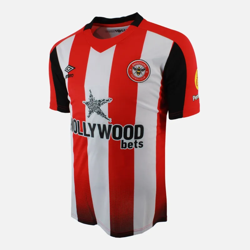 Ethan Pinnock personally signed Brentford football shirt. Home kit from the 2023-25 Premier League seasons.