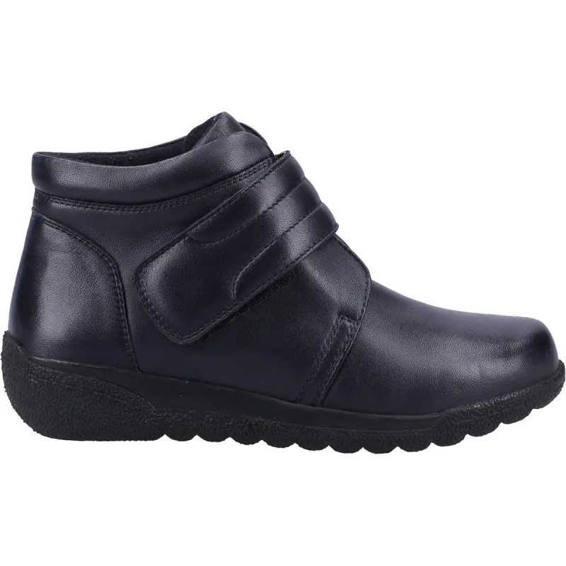 Women’s comfortable slip on casual ankle boot with luxury leather & touch fastening. A leather lined memory foam foot bed gently moulds to the shape of the foot for all day comfort.