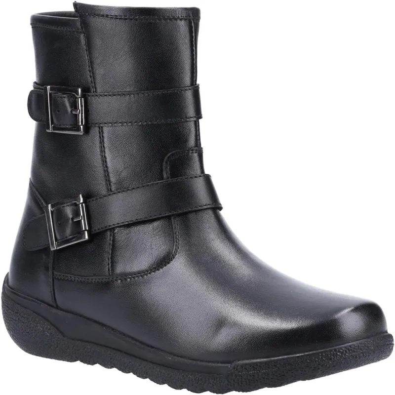 Stay effortlessly stylish with these lightweight double buckle side zip ladies mid boots from Fleet & Foster. Zambia is a simplistic design with lether uppers, memory foam footbed and soft-touch warm suede lining is gentle on tights and feet.