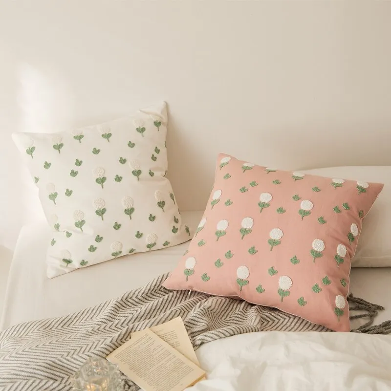Let style bloom throughout your home with our Floral Embroidered Cotton Pillow Covers. These pretty pillow covers add a feminine touch to any room. Decorate your favorite reading chair or pop a few of these delightful covers on a home or cottage sofa. They look great in a teenager’s room and will brighten any master or guest bedroom too. Beautiful pillow covers such as these are an easy solution when you want to give a room a quick refresh without breaking the bank. It’s amazing how changing a pillow cover can create a whole new look and feel in your home. These embroidered pillow covers are made of easy-to-care-for high quality cotton. They have an embroidered floral front, hidden zipper and solid colored back. In soothing shades of pink or white, these gorgeous pillow covers will blend beautifully with any décor style. They’re extra soft and fluffy on the front, adding texture and pattern to any space. Bet you can’t pick just one!