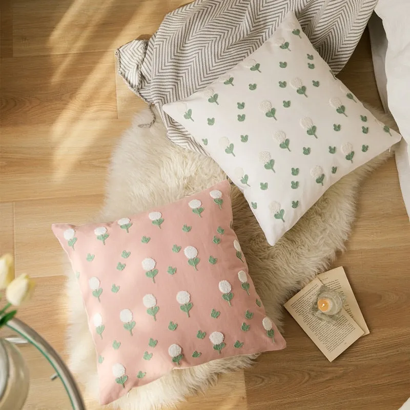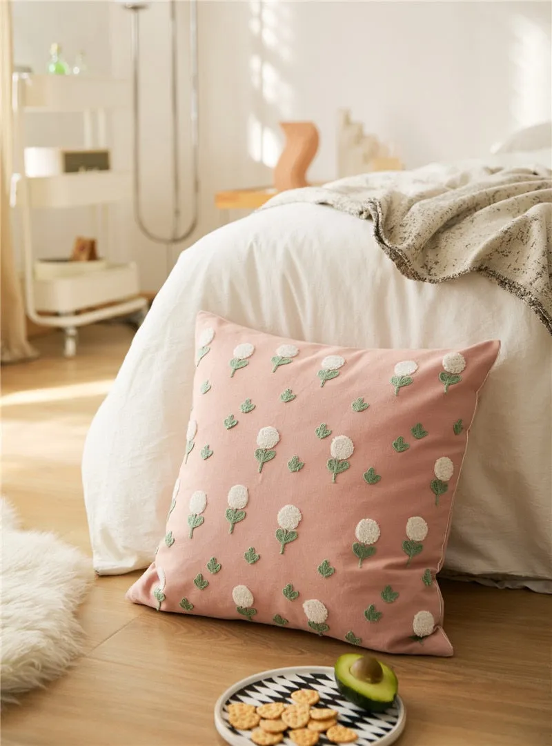 Floral Embroidered Cotton Pillow Cover