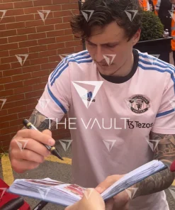 Andreas Pereira personally signed and framed Fulham football shirt, from the 2023-24 Premier League season. Displayed in our smart compact shirt frame finished in black aluminium.