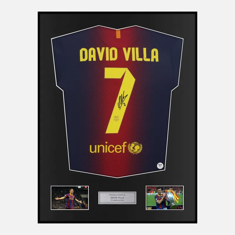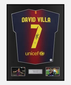 Framed David Villa Signed Barcelona Shirt 2012-13 Home [Classic]