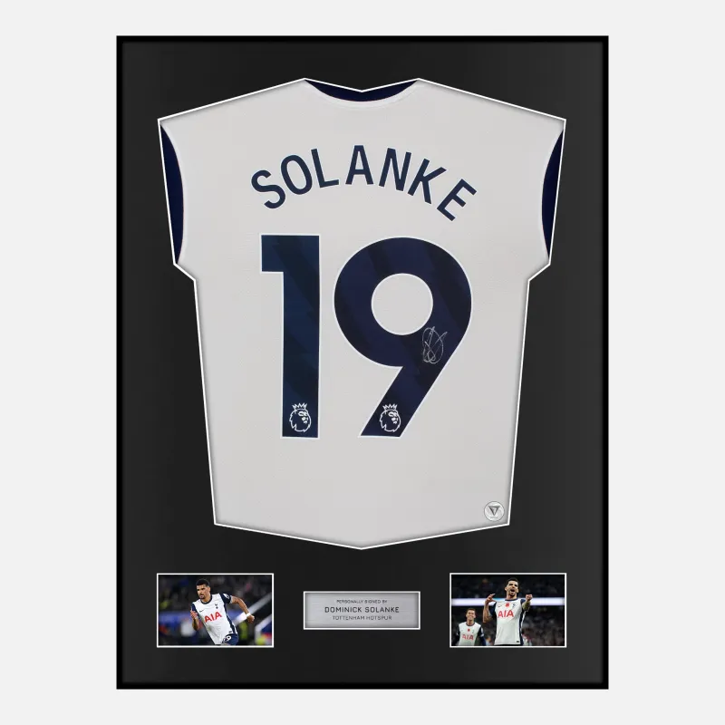 Dominic Solanke personally signed and framed Tottenham Hotspur football shirt, from the 2024-25 season. Displayed in our ultra-slim aluminium shirt frame finished in satin black.