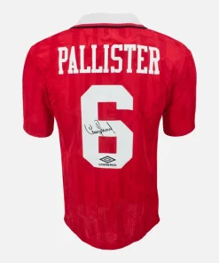 Gary Pallister personally signed and framed Manchester United football shirt, official reissue of the 1992–94 home kit. An ever-present in Sir Alex Ferguson’s defence, Pallister played over 300 matches for United, lifting the inaugural Premier League trophy in 1992–93 and securing the Double in 1993–94. His partnership with Steve Bruce formed the backbone of a dominant era at Old Trafford. Official reissue kit, rare signature, displayed in our ultra-slim aluminium shirt frame finished in satin black.