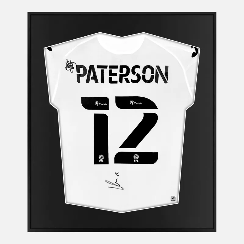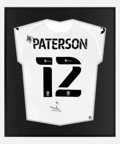 Jamie Paterson personally signed and framed Swansea football shirt, from the 2022-23 Championship season. Displayed in our smart compact shirt frame finished in black aluminium.
