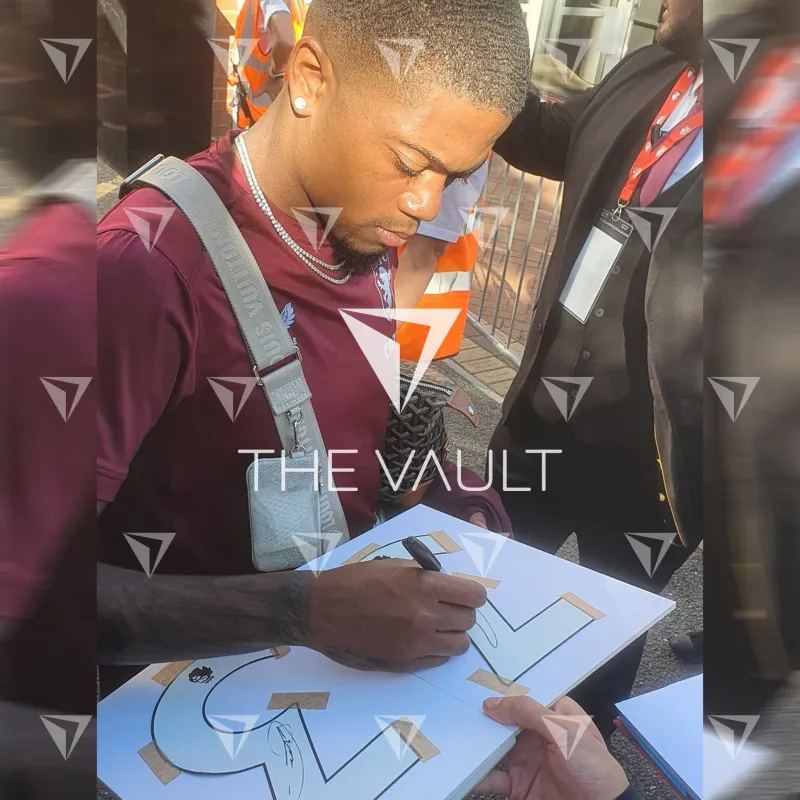 Leon Bailey personally signed and framed Aston Villa football shirt. From the 2021-22 Premier League season, displayed in our smart compact shirt frame finished in black aluminium.