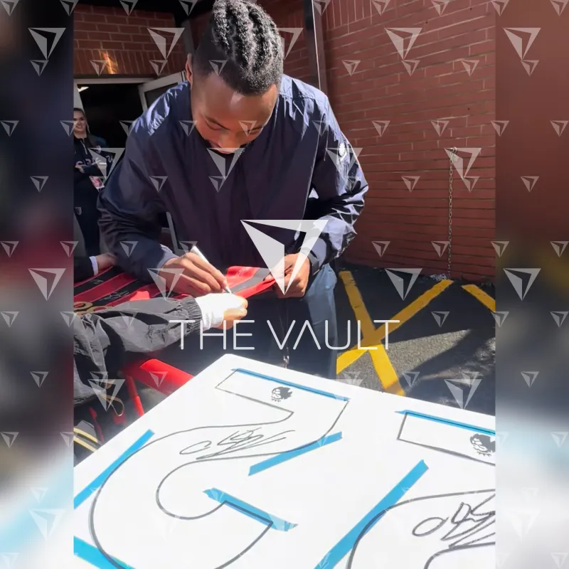 Antoine Semenyo personally signed and framed AFC Bournemouth home shirt, Official Umbro home kit from the 2023-24 Premier League season. A constant threat with explosive carries and sharp movement, he produced clutch goals across the campaign, headlined by the two-goal surge that completed the 4-3 turnaround against Luton. Official Shirt, Rising Star Signature, displayed in our smart compact shirt frame finished in black aluminium.