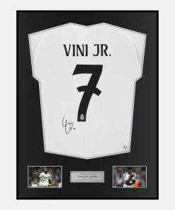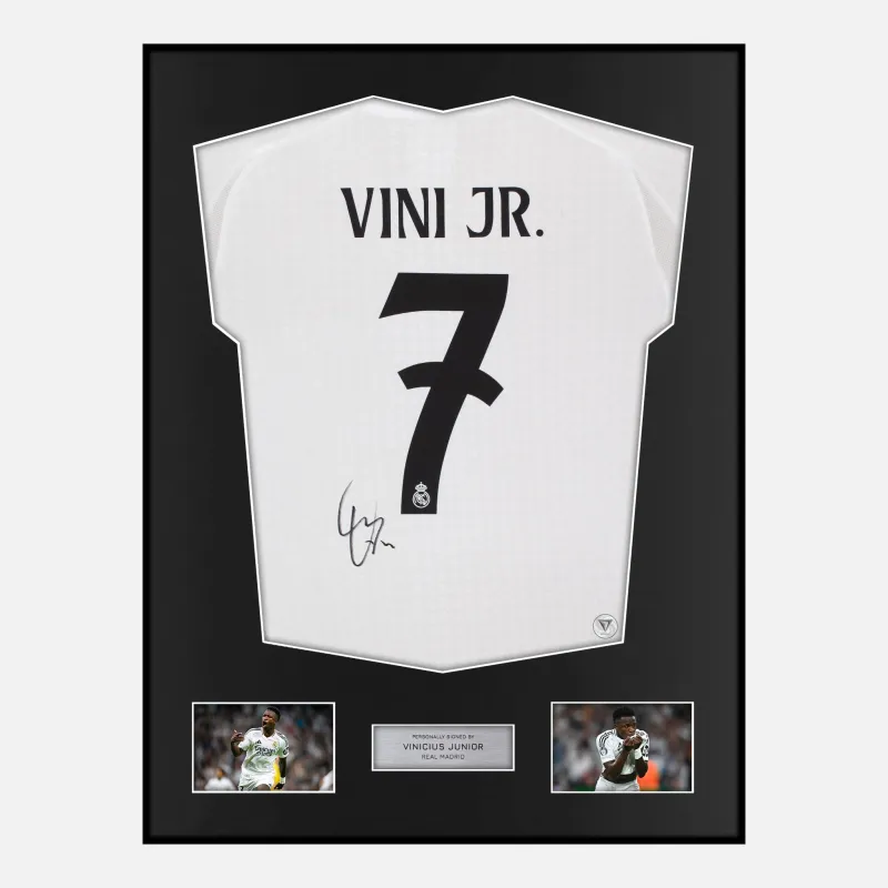 Framed Vinicius Junior Signed Real Madrid Shirt 2024-25 New [Classic]