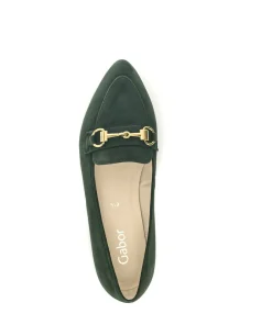 Rock this elegant ladies loafer from Gabor this upcoming season with your favourite outfit. Finished in soft forest green suede uppers with a gold horse bit brooch over the toes and a slight 15mm heel. In a slip on style featuring a soft leather lining and footbed for a comfortable wear.