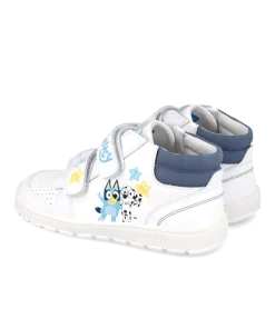 The Garvalin Boys Trainer in Blanco is the perfect blend of fun and function. Featuring a crisp white leather look with playful Bluey and friends graphics, these trainers bring a touch of adventure to everyday wear. The double Velcro straps make them easy to slip on and off, while the breathable perforated upper keeps feet cool and comfortable. A padded ankle collar adds extra support, and the durable non-slip sole is built for active play indoors and out.