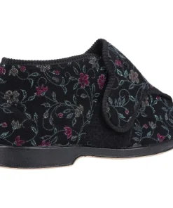 Super cosy easy touch-fasten womens slippers from Great British Slippers. The elegant floral print uppers open almost to the toe for easy entry and simply touch fasten. An adjustable design to accommodate for swelling. Machine washable at 30 degrees.