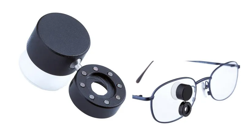 - A mini stick-on iris for use on ordinary glasses