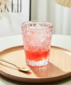 Each glass is intricately engraved with a checkered diamond pattern, adding a touch of sophistication to your drinkware collection. Beyond aesthetics, these cups are designed for practicality. They’re highly heat resistant, making them perfect for hot beverages, and their colored tinted glass adds a touch of playfulness to your table setting.