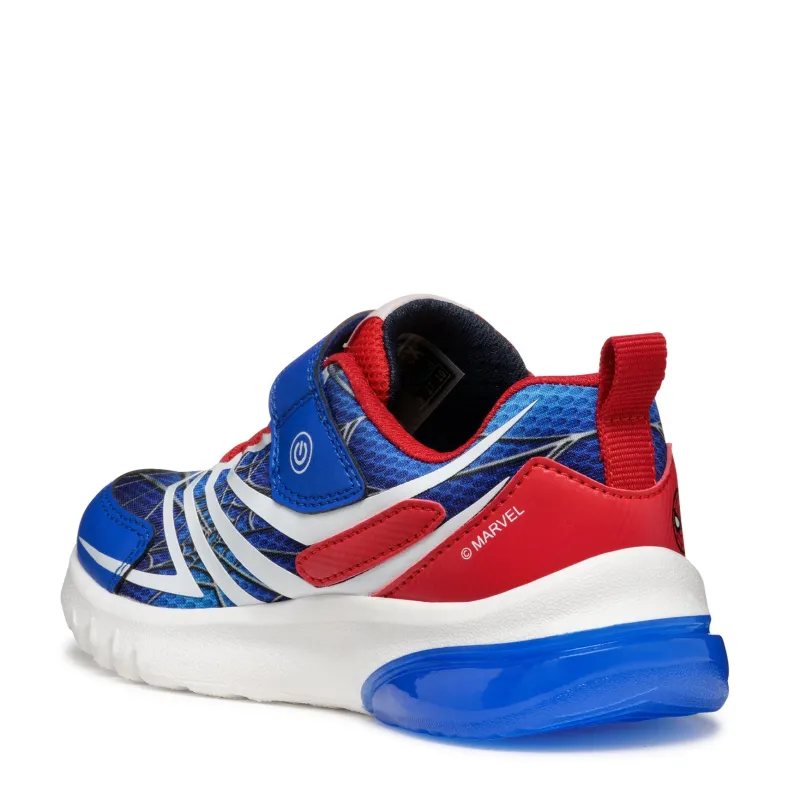 Light up with every step with the boys Geox Trainers. Featuring a cool Spider-man inspired design. In blue and red, fastened with bungee laces and a sturdy velcro strap. Complete with a padded insole and an on/off button to the side. Its sure to be a favourite with your SpiderMan crazy boy.