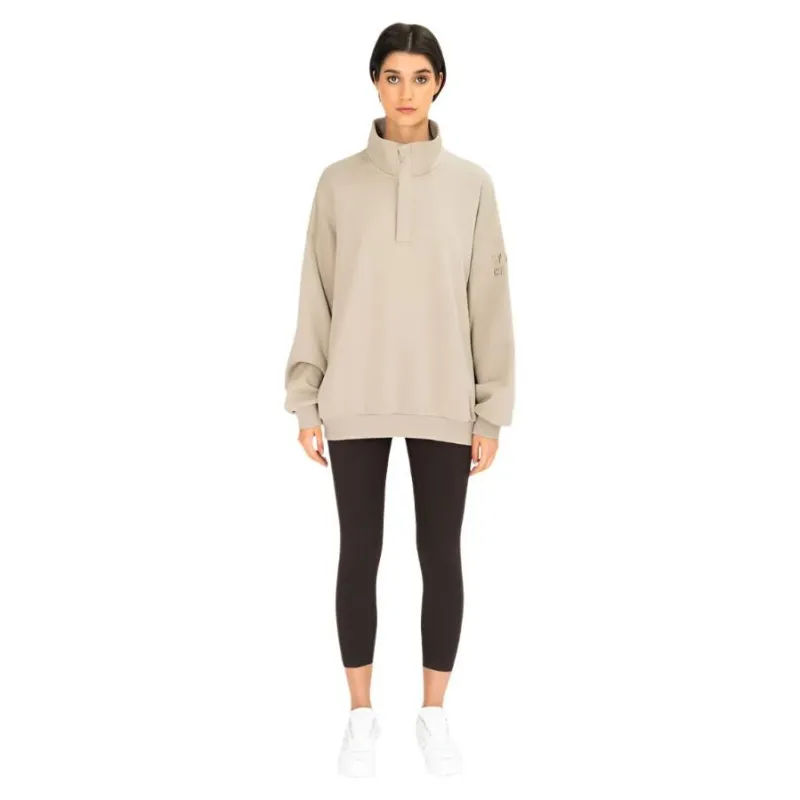 Gym+Coffee Unisex Sweatshirt Snap Collar Sierra Rich Taupe