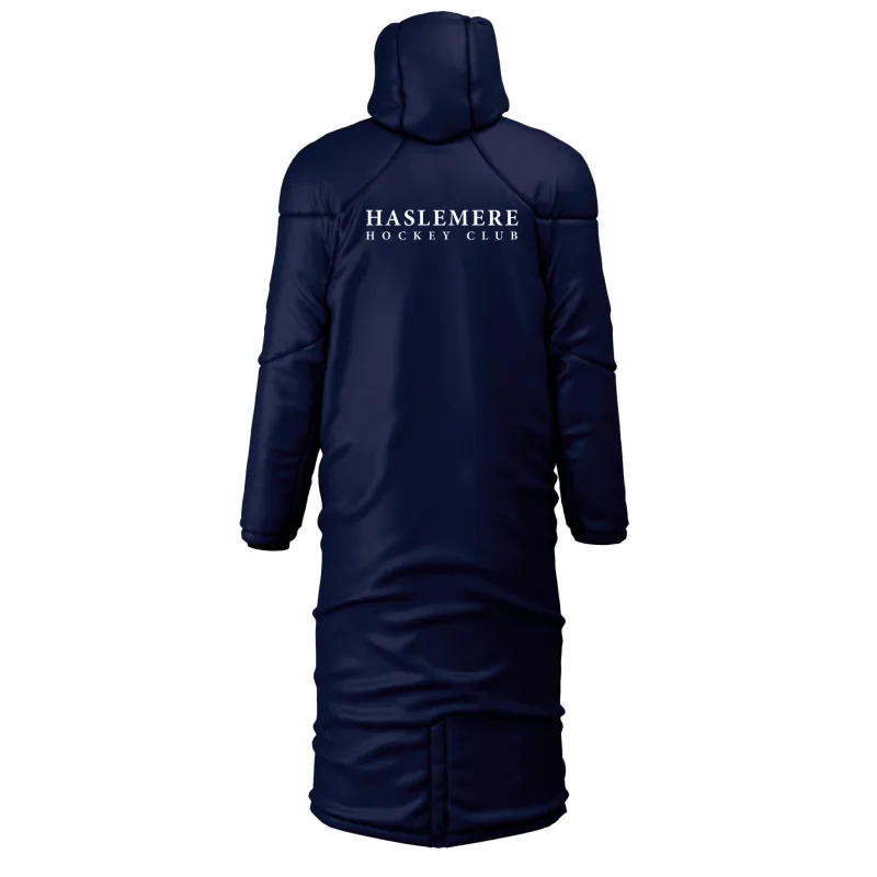 Haslemere HC Piranha Contoured Subs Coat with Club logo embroidered on the left breast, as worn, Piranha logo on the right and Haslemere Hockey Club printed, in white and across 2 lines, on the back.