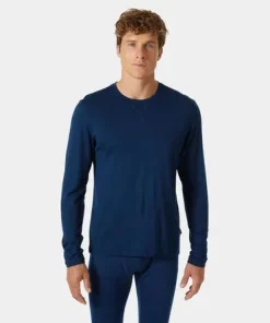 HELLY HANSEN MENS MERINO CREW BASE LAYER OCEAN
