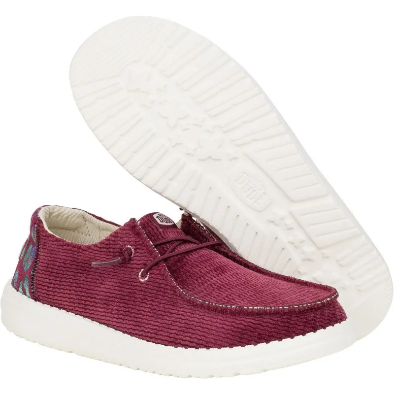 HEYDUDE Wendy Corduroy Leo Shoes Burgundy