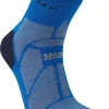 Lightweight, soft feel socks in an ankle length design. Minimally cushioned but with durable fabric at heel and toe to prevent wear and minimise blisters. The upper and midfoot area has ventilated mesh fabric which helps to hold the sock in place to prevent slippage and also keeps the foot cool and dry. Made with recycled polyester.