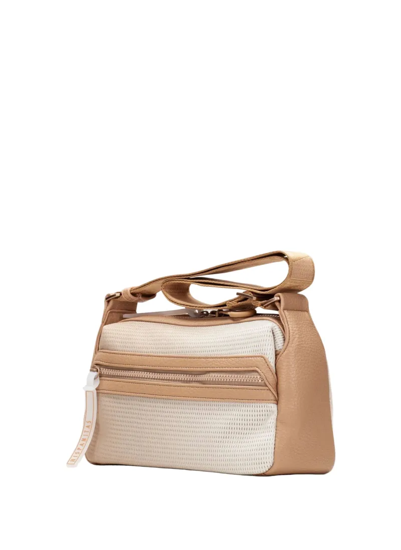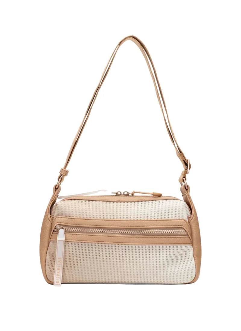 The Hispanitas Womens Bag in Desert offers a fresh, modern take on everyday accessorising. Designed with a softly structured silhouette, this compact crossbody bag features a textured front panel contrasted with smooth trim for added visual interest. Practical yet stylish, it includes multiple zip compartments to keep essentials organised, while the adjustable shoulder strap ensures comfortable, hands-free wear. Finished in a warm Desert tone, this versatile bag pairs seamlessly with casual and smart-casual outfits alike.
