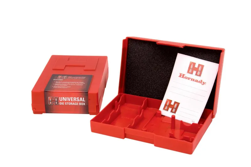 This box is stackable and offers an organized and clean approach to storing your dies with compartmentalized locations for dies, bushings, shell holders and a taper crimp die. This is the same storage Die Storage Box that comes standard with all Hornady® Custom Grade™ and Match™ Grade die sets. Other accessories sold separately.