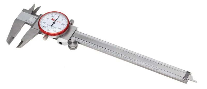 Stainless steel construction with shock-resistant dial is accurate to +/- 0.001”. Four-way measurement capability: inside, outside, depth and step. Slide may be locked in any position for precise measurements. Thumb wheel aids in easy opening and closing. Includes plastic storage case.