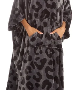 Huggable Hoodie Oversized Wearable Blanket Womens Fleece Hoody – Grey Panther