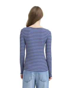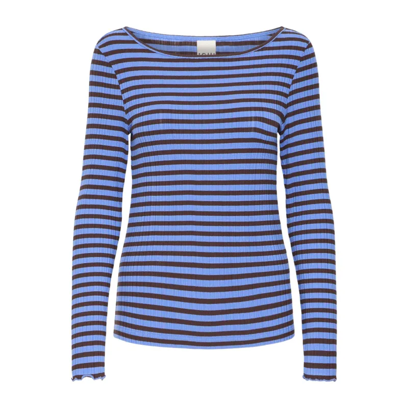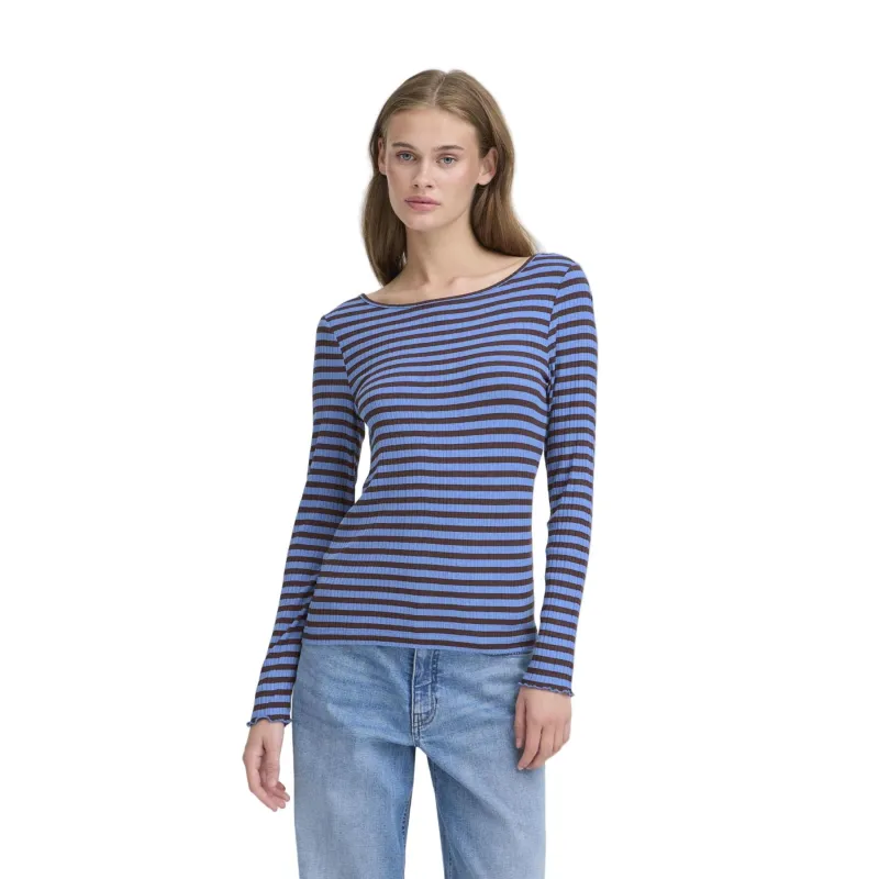 Ichi Womens Top Cella LS Blue Yonder/Coffee Bean