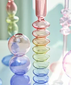 Elevate your ambiance with our enchanting Rainbow Glass Candle Holder. Handcrafted with precision from premium glass, each piece boasts a vibrant spectrum of colors, adding a kaleidoscopic charm to any space. Embracing a fusion of New Classical and Post-modern aesthetics, its timeless design effortlessly complements any decor style. Perfectly suited for stick candles, this exquisite holder seamlessly blends form with function, offering a captivating display while illuminating your surroundings. Whether adorning your dining table or accentuating your mantlepiece, this exquisite candlestick holder promises to infuse your home with warmth and elegance. Embrace the artistry of handmade craftsmanship and illuminate your world with our Rainbow Glass Candle Holder today!