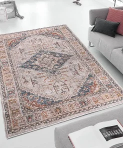 The Jasmine Vintage Medallion Multi Woven Area Rug offers a sophisticated update to your home. This area rug features a beautiful vintage medallion pattern in rich tones of deep blue and orange, for a stunning a globally inspired look. The soft, medium pile makes the woven rug well suited for high traffic areas, while the transparent sprayed latex reverse helps keep the rug from sliding. A rug pad is still highly recommended to keep the rug in place. Stain and fade resistant, this woven area rug is OEKO-TEX certified, meaning it does not contain any harmful substances or chemicals to ensure quality comfort and wellness. Rug is available in multiple sizes, which makes it perfect for your living room, family room, or entryways. To clean, use a vacuum or spot clean.