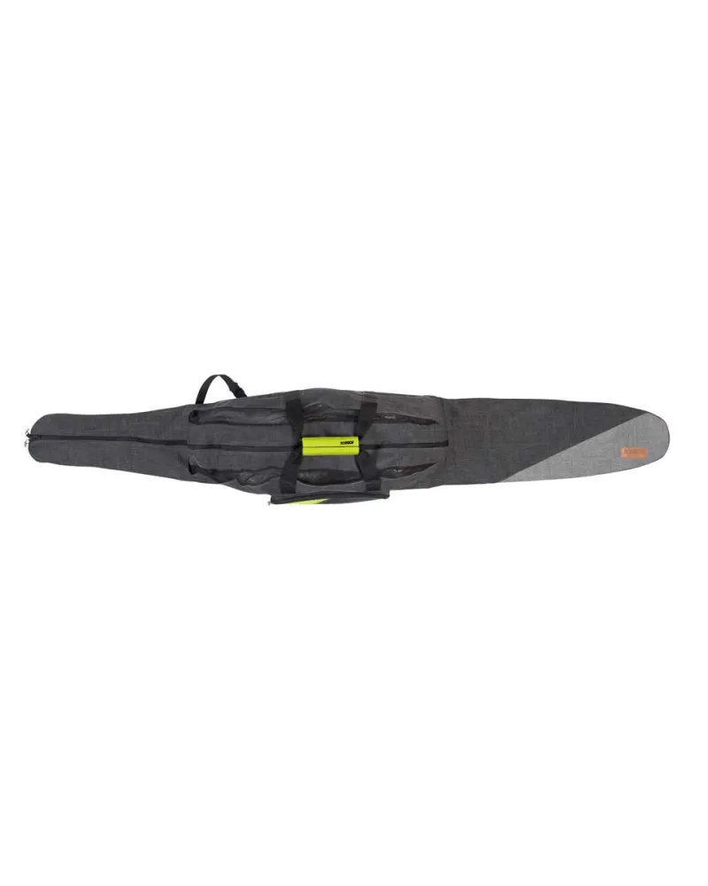 Our strong nylon bag is padded throughout the entire bottom and you can use it for all kinds of our slalom skies. It comes with a large separate bindings compartment and added shoulder straps to make your bag easy-to-carry to your next bay.
