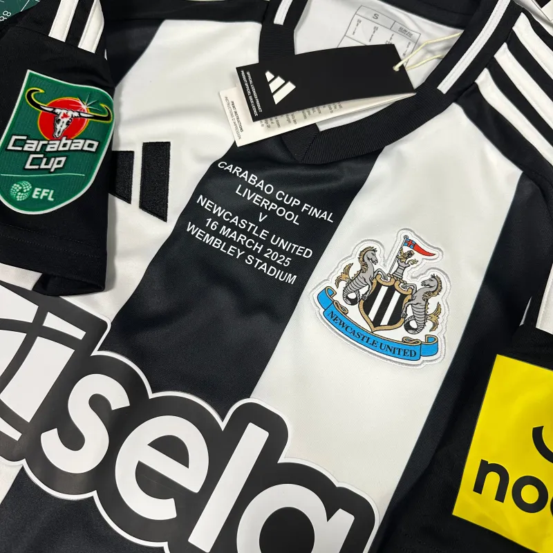 Joe Willock personally signed Newcastle United football shirt, Carabao League Cup Final home shirt from the historic 2025 winning season. Willock came on late in Newcastle’s Carabao Cup triumph of 2025, helping the Magpies finally end a 70-year wait for domestic silverware. Since arriving from Arsenal, he has become a key figure in midfield, known for his driving runs, energy, and goals from deep.