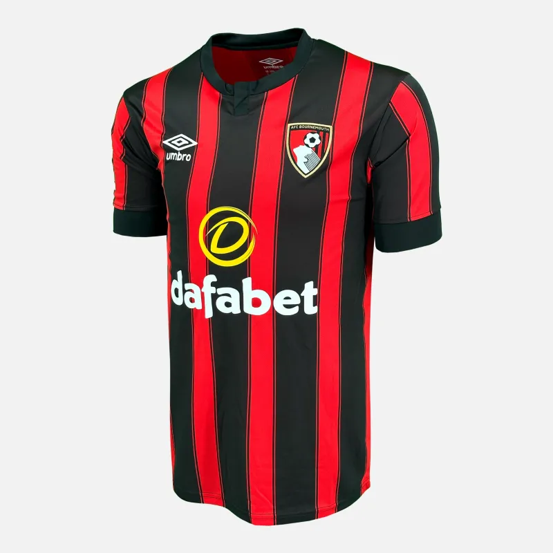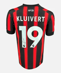 Justin Kluivert personally signed AFC Bournemouth home shirt, Official Umbro kit from the 2023-24 Premier League season. In a record-breaking campaign for the club, Bournemouth hit 48 league points as the Dutch forward added pace, direct running and end product. Kluivert finished the league season with seven goals, including a driven strike to restore the lead in a 2-2 draw against Manchester United in April 2024. This official Umbro home shirt carries his authentic signature and celebrates a season of progress built on speed, movement and decisive finishing.