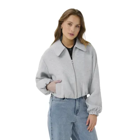 The Ludovika jacket is a modern update on a timeless outerwear staple. Crafted from a soft wool-blend in a versatile light grey, this zip-up style features a cropped cut and relaxed dropped shoulders for effortless layering. Details like the elasticated hem and cuffs offer subtle structure, while the oversized collar adds a touch of vintage flair. Ideal for elevating casual denim or softening tailored looks.