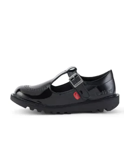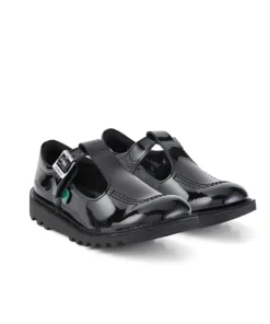 Kickers Junior Girls Shoe Kick T-Bar Patent Leather Black