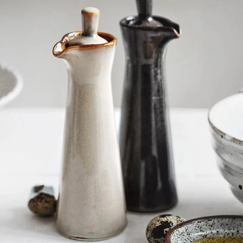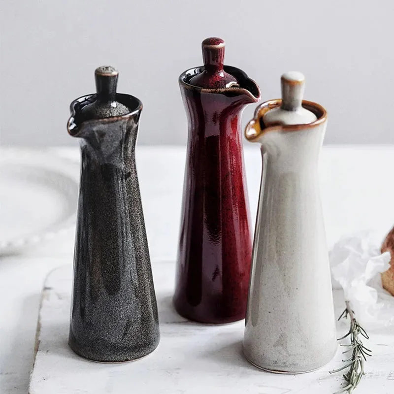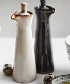Perfect for storing soy sauce, vinegar, or any liquid condiments, these pots combine function and beauty. Their narrow, tall design ensures easy pouring, while the included lids keep contents fresh and secure. The smooth, ergonomic form adds a modern touch to traditional craftsmanship, making them ideal for everyday use or as a statement piece in your kitchen décor.