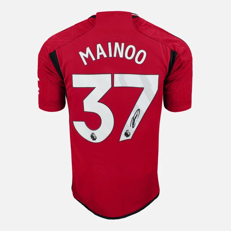 Kobbie Mainoo personally signed Manchester United football shirt. From his break through 2023-24 season, the year Mainoo scored the winning goal in the FA Cup final.