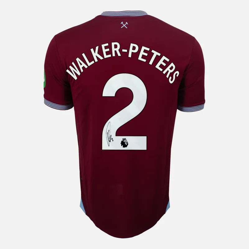 Kyle Walker-Peters personally signed West Ham United football shirt, Official Umbro kit from the 2025-26 season. Signed on a three-year deal in July 2025, the two-footed full-back made an immediate impact with energetic overlaps and composed 1v1 defending on either flank. He delivered a key moment at London Stadium with the 87th-minute finish that sealed a 3-2 comeback win over Burnley, a first West Ham goal that underlined his timing and drive. This official Umbro shirt carries his authentic signature, celebrating a Premier League-proven defender bringing pace and precision to east London.