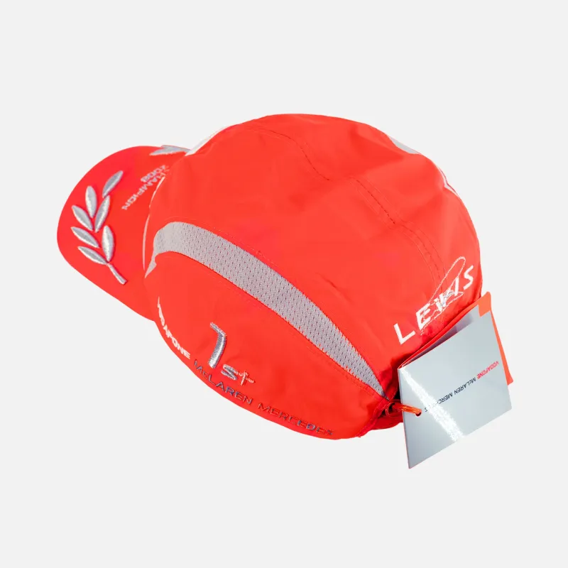 Lewis Hamilton 2008 World Champion cap, McLaren Mercedes, Mercedes-Benz F1 Team in Neon Orange. Championship hat celebrating Hamiltons first title in the 2008 season. Curved peak style featuring the Vodafone logo and wreath embroidery alongside 1st Championship detailing. Brand new with tags, adjustable clasp.
