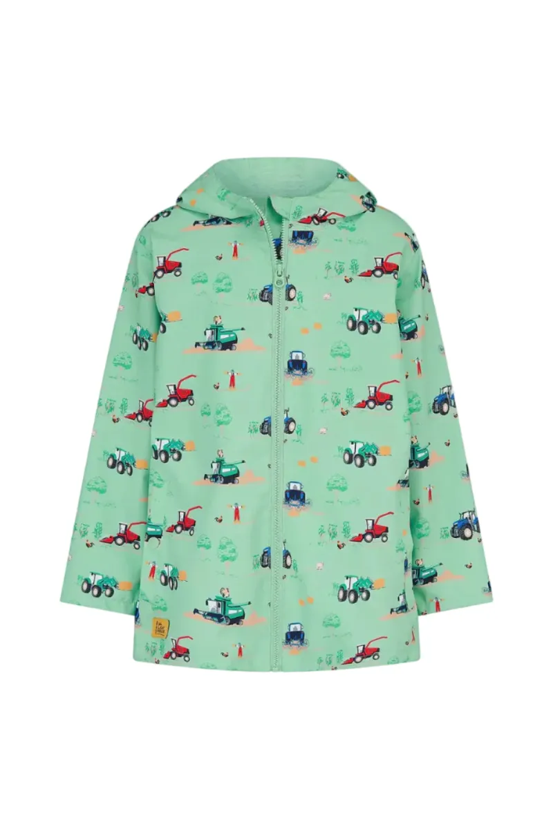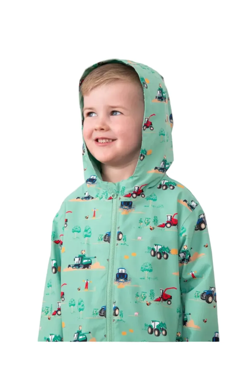 The Lighthouse Ethan Jacket is a practical and playful outer layer designed for everyday adventures. Featuring an all-over tractor and farm print, it adds a fun touch that little ones will love. The lightweight waterproof fabric helps keep kids dry during unexpected showers, while the soft lining provides comfortable wear. A full zip front and hood complete this Lighthouse jacket, making it ideal for outdoor play and rainy days.