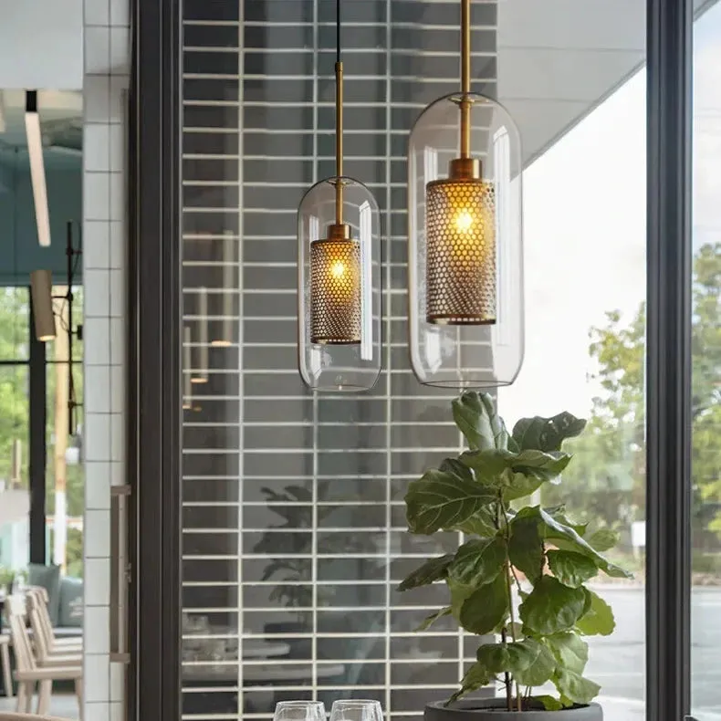 Illuminate your space with refined character with the Luce Postmodern Pendant Light. Designed with a harmonious blend of vintage inspiration and modern sophistication, this pendant features a transparent glass halo that encircles a natural stone core. The cylindrical stone element showcases subtle veining, adding organic texture and uniqueness to each piece, while the surrounding glass layer introduces a light, architectural balance.